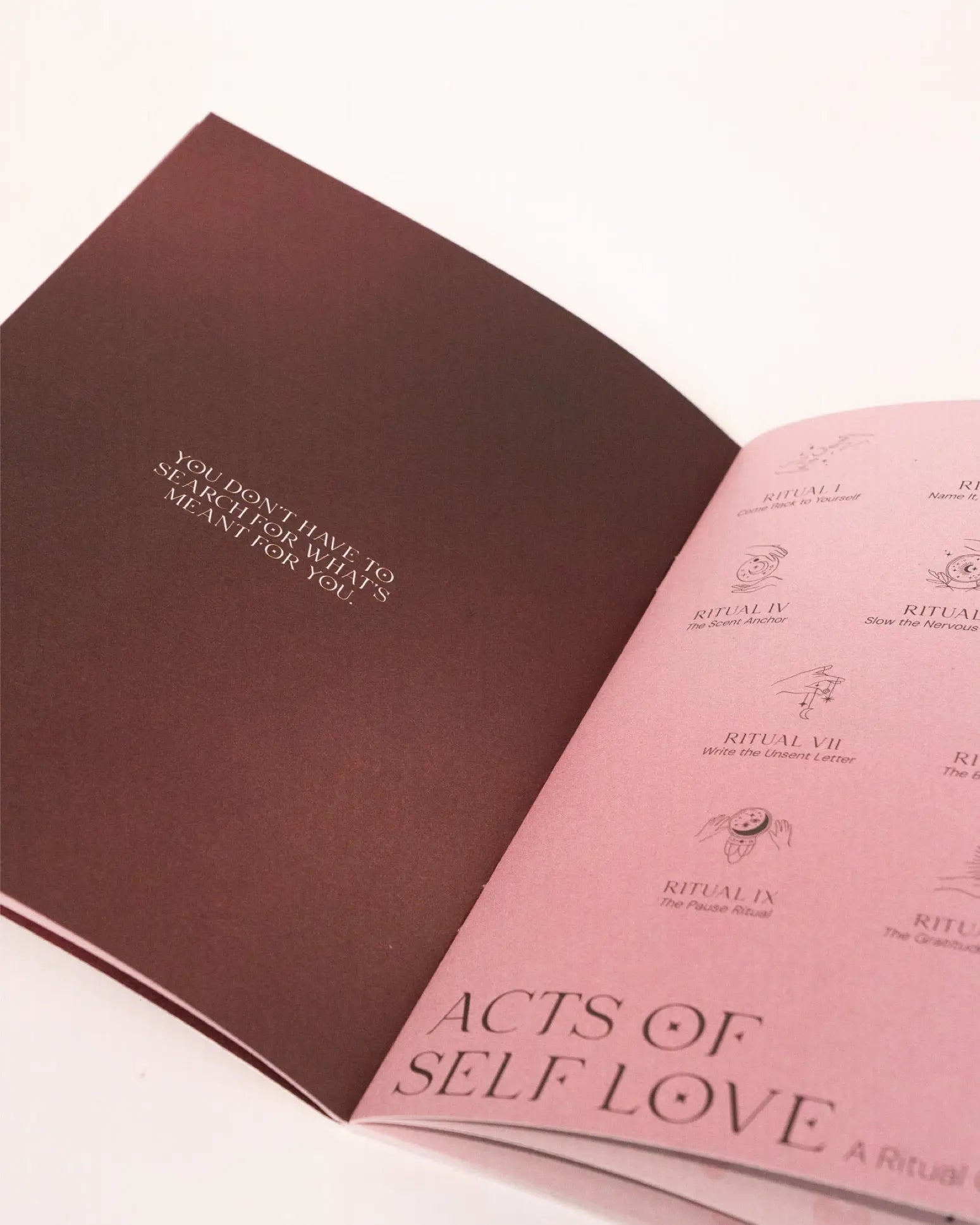 Dein Begleiter für bewusste Momente mit dir selbst. Das Acts of Self Love Booklet führt dich durch ausgewählte Rituale, abgestimmt auf unterschiedliche Gefühle und innere Zustände. Ob du Ruhe suchst, Klarheit brauchst oder dir selbst näherkommen möchtest – jede Seite lädt dich ein, innezuhalten und bewusst Zeit mit dir zu verbringen.